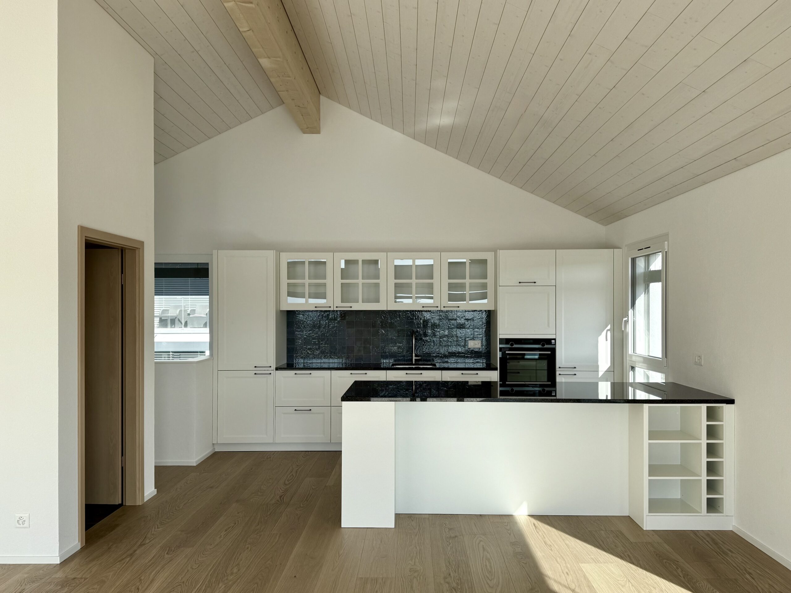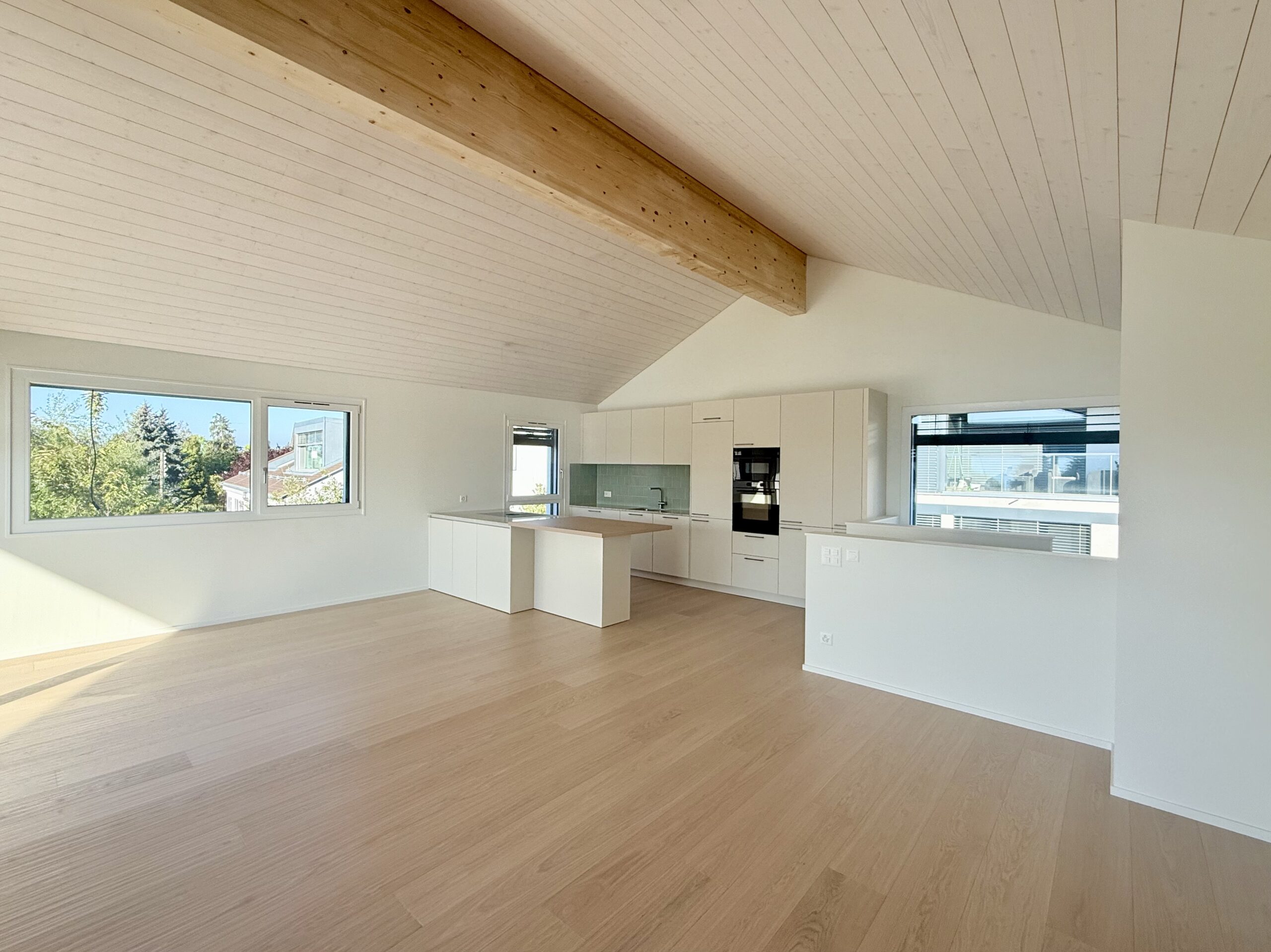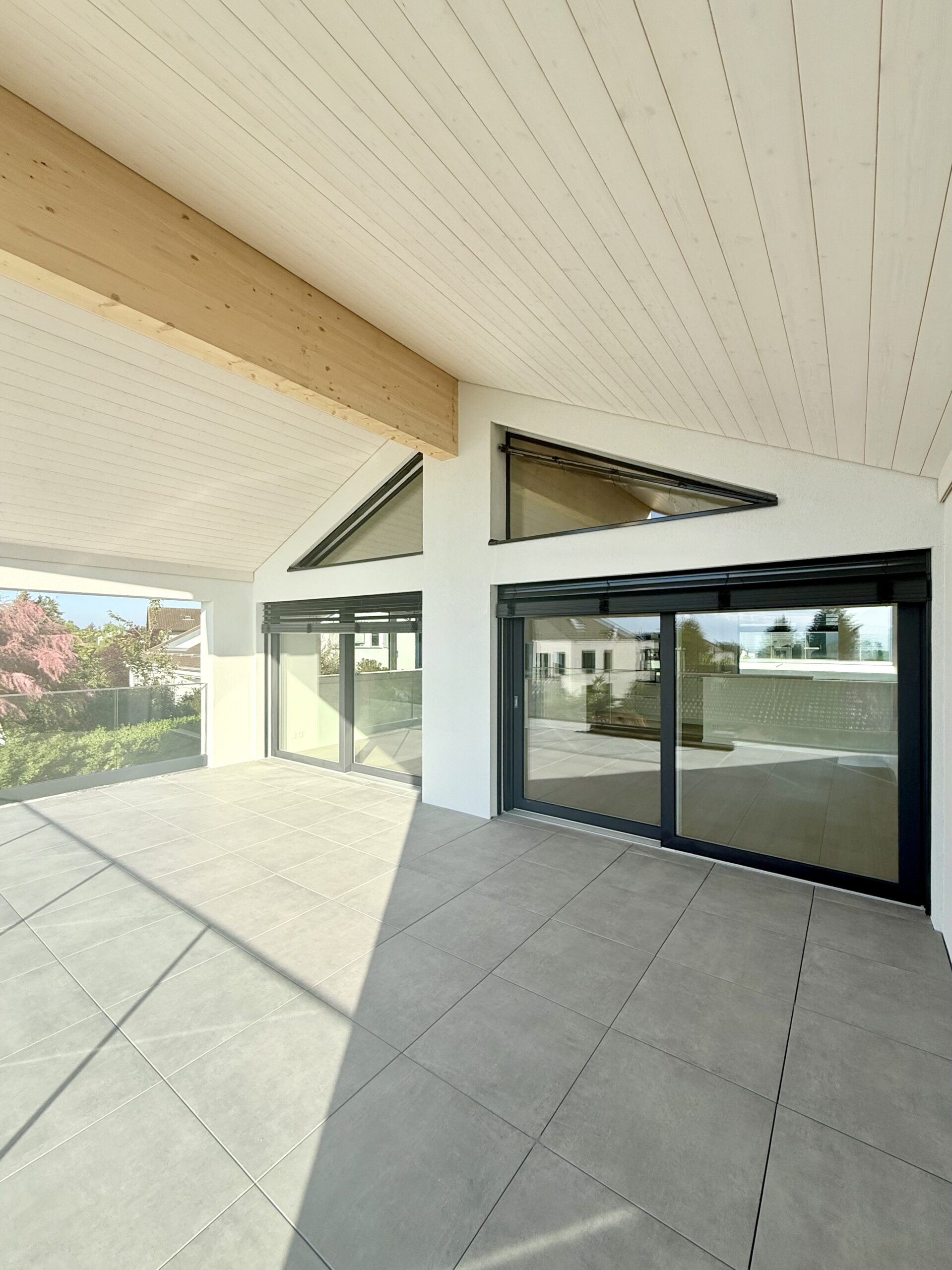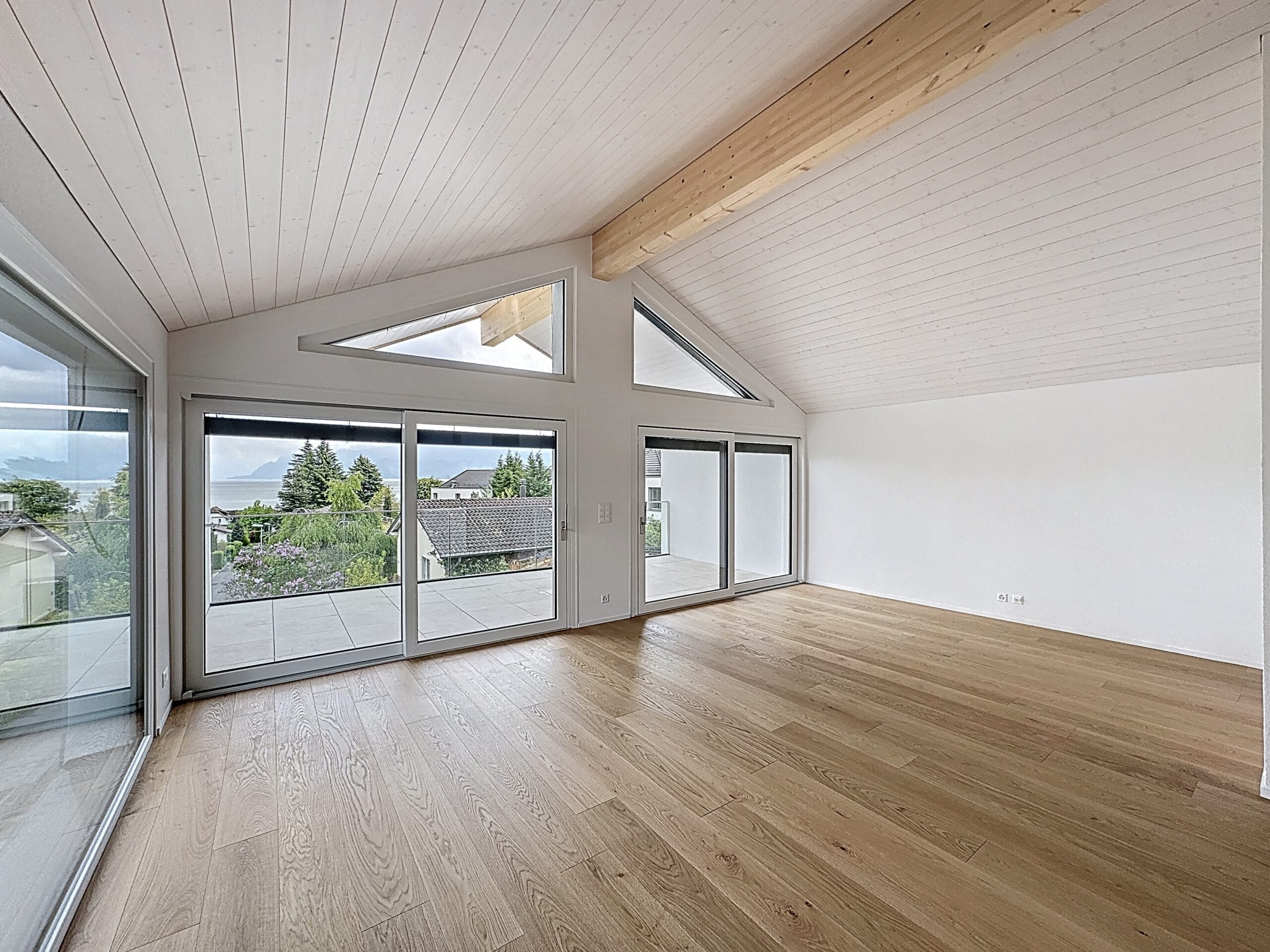 De grandes baies vitrées et une vaste terrasse ensoleillée prolongent l’espace intérieur, créant un lieu de vie lumineux, ouvert et harmonieux.