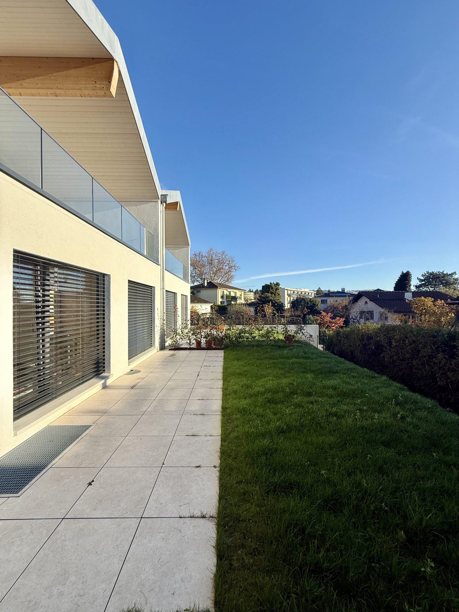 Ce projet de deux villas mitoyennes à Saint-Sulpice (VD) se distingue par une conception atypique où les pièces de vie se situent à l’étage, offrant une vue imprenable sur le lac Léman.